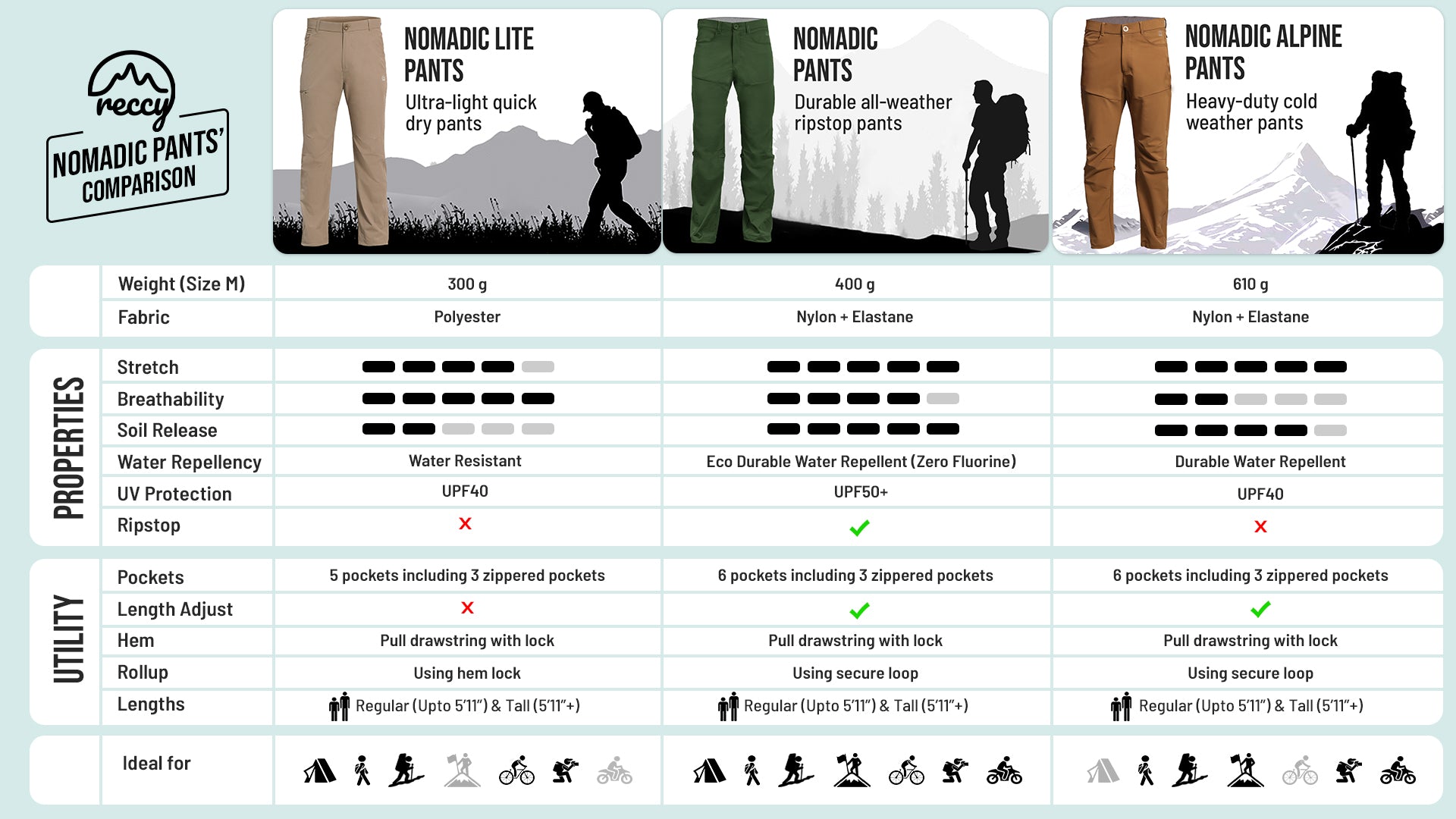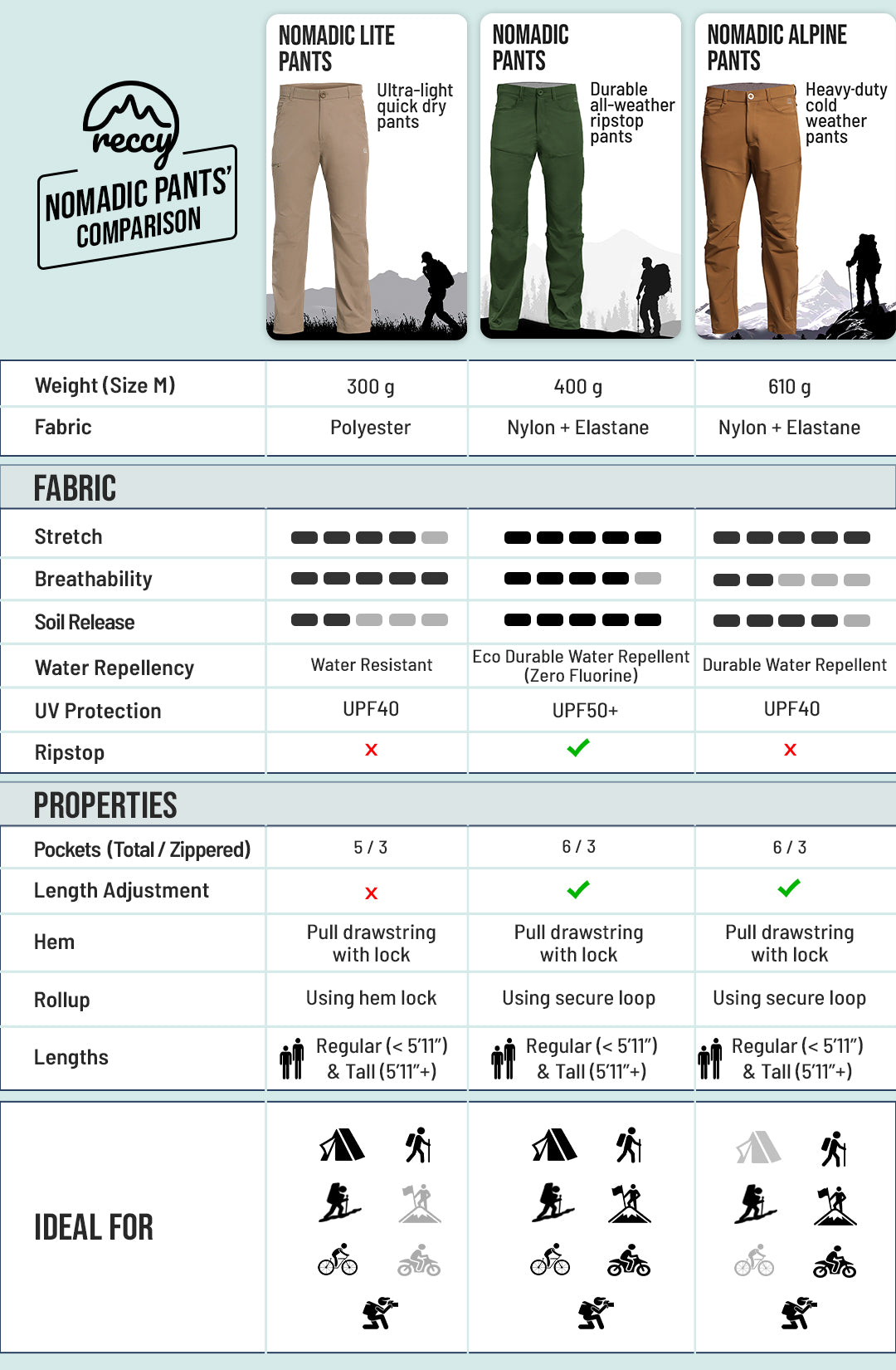 I was searching for pants with a good fit for plus-size people like me, and they had to be stretchable too. I finally found the perfect pair at Reccy! These Nomadic Lite pants completely fulfilled my requirements. The fit is excellent—comfortable for trekking, hiking, bike rides, or even daily wear. Plus, the water-repellent fabric is a great bonus.